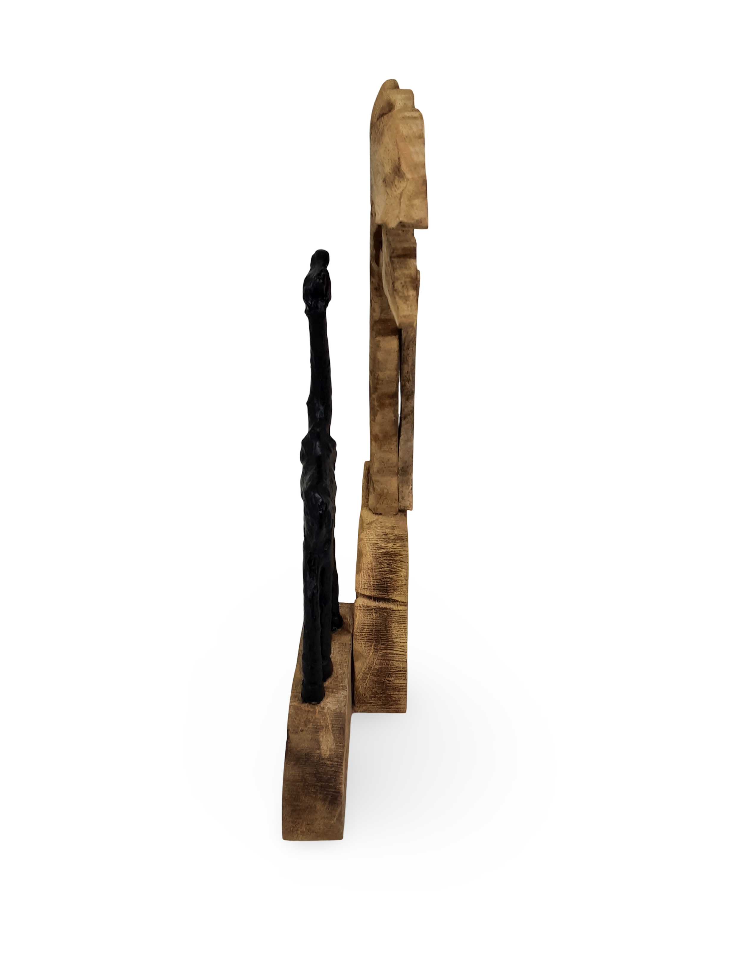 Polyresin, Mango Wood and Iron Couple on Log Sculpture